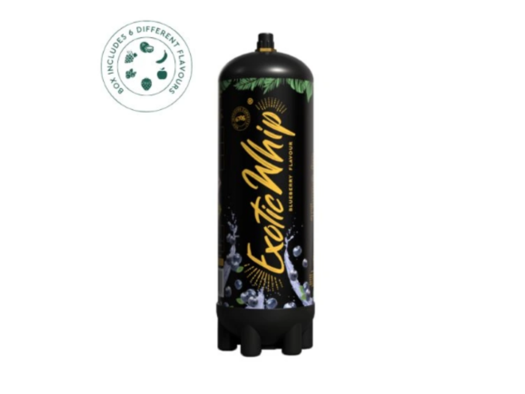 Exotic Whip - Borůvka nabízí špičkově a designově zpracovanou nádobu na výrobu šlehačky, která obsahuje 670G gramů oxidu dusného (N₂O) zvaného rajský plyn.